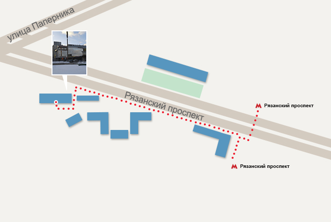 Метро "Рязанский проспект", выход № 2. Идете по направлению к Рязанскому проспекту, мимо торговых рядов и магазина «Дикси», поворачиваете налево и идете прямо вдоль Рязанского проспекта по направлению в центр к дому №32 корп.3, мимо «Хлебной лавки», магазина «Комус». Торговый центр "Наска Плаза" (за зданием «Макдональдс»). Вход со двора в центре здания. На посту охраны получить пропуск и подняться на пятый этаж. Пройти налево к серой двери офисного блока, далее по коридору в медцентр, комната №514.