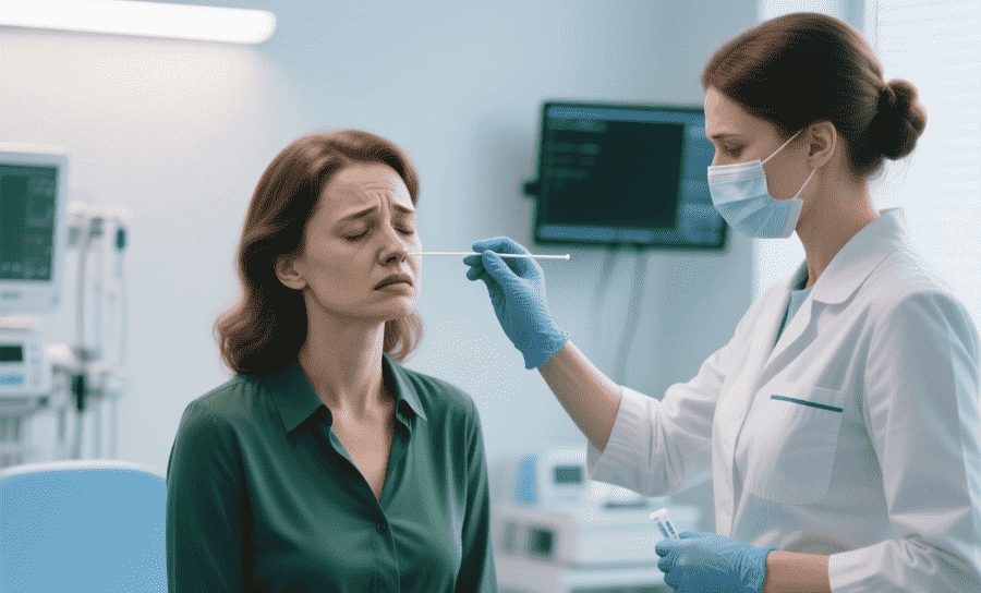 - Очистите носовые проходы перед забором биоматериала, если это необходимо